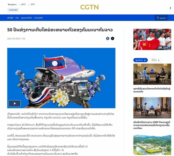 老挝人民民主共和国建国50周年、中老铁路开通运营4周年之际,云南艺术学院设计学院数字媒体艺术系杨璐老师及工作室学生团队与中央广播电视总台亚洲非洲地区语言节目中心老挝语部(下称“总台老挝语部”)共同创作的拼贴动画《50年,老挝交通进化史》在中国国际电视台(CGTN)老挝语网站及海外社交媒体同步上线。拼贴动画《50年,老挝交通进化史》以时间轴串联老挝人民民主共和国50年以来的交通变迁,清晰呈现老挝从“陆锁国”到“陆联国”...