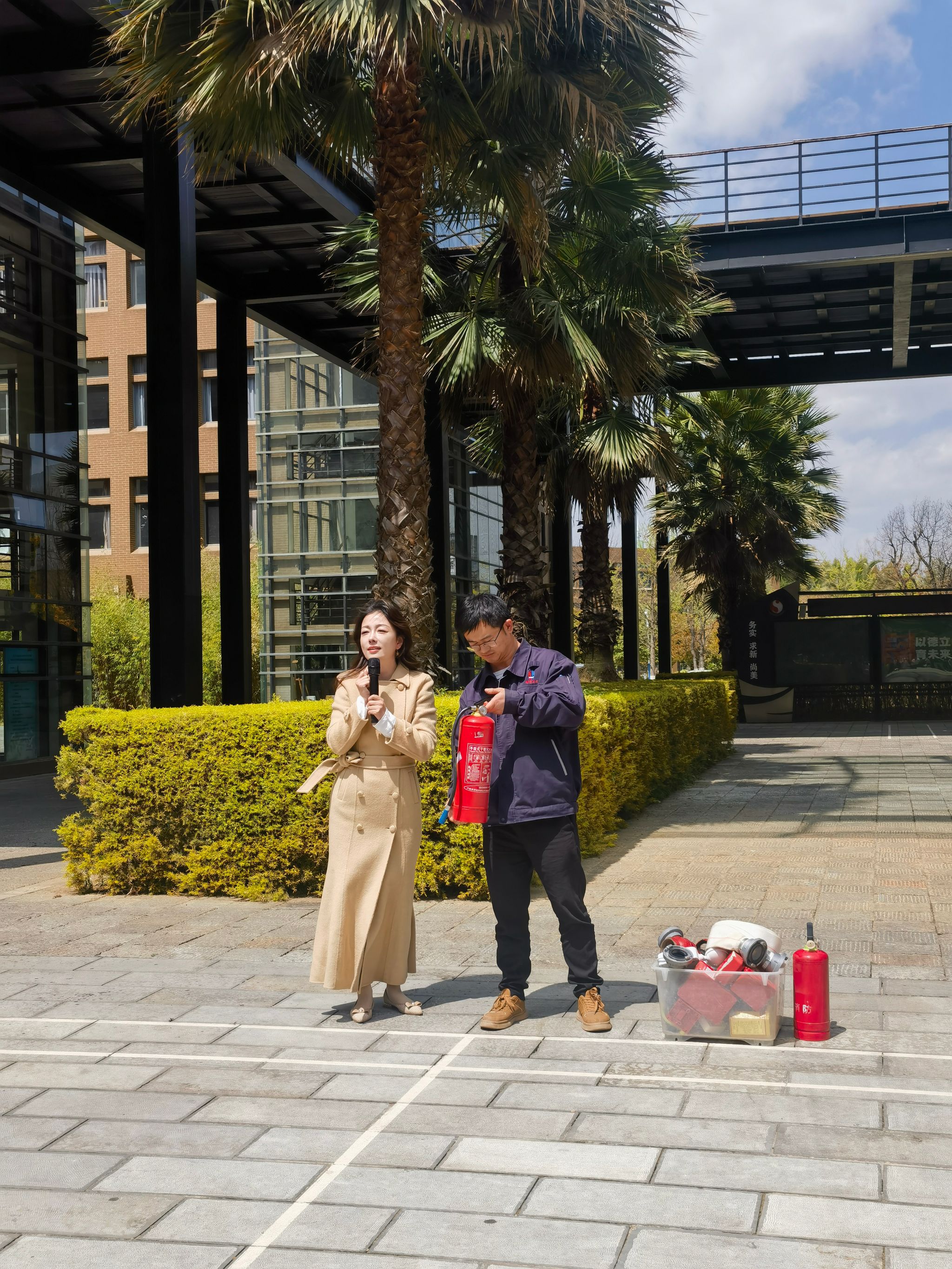 最后,在设计学院中庭广场,组织开展了消防设施和器材的灭火实操演练,参加实操演练的师生代表在保卫处消防工作人员的指导下,按照消防器材讲解与示范要求,进行灭火器材操作技能实操演练。