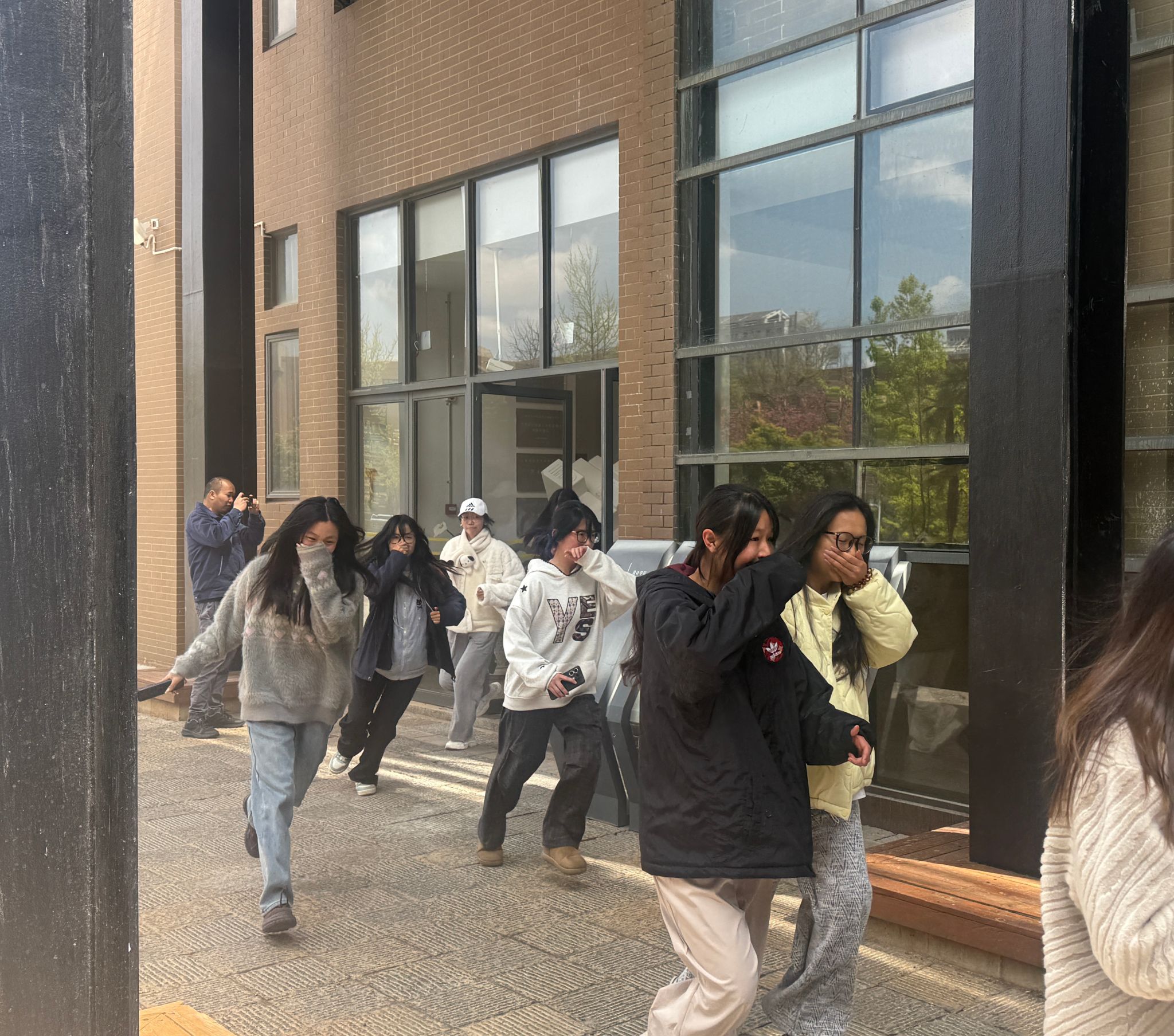 综合应急疏散演练在设计学院教学楼进行,随着火灾报警铃声的响起和发烟器的模拟发烟,在各年级辅导员和各楼层助理的协助下,学生按照演练要求,有序从教学楼楼梯迅速疏散至设计学院中庭广场,顺利完成疏散演练。